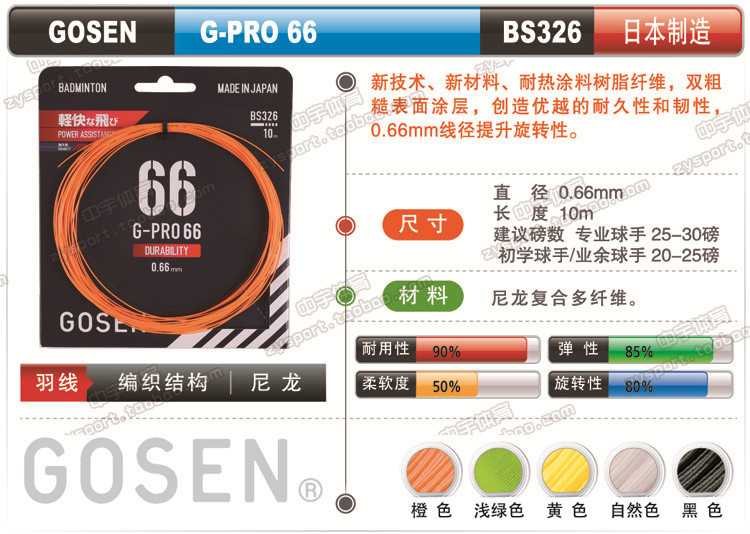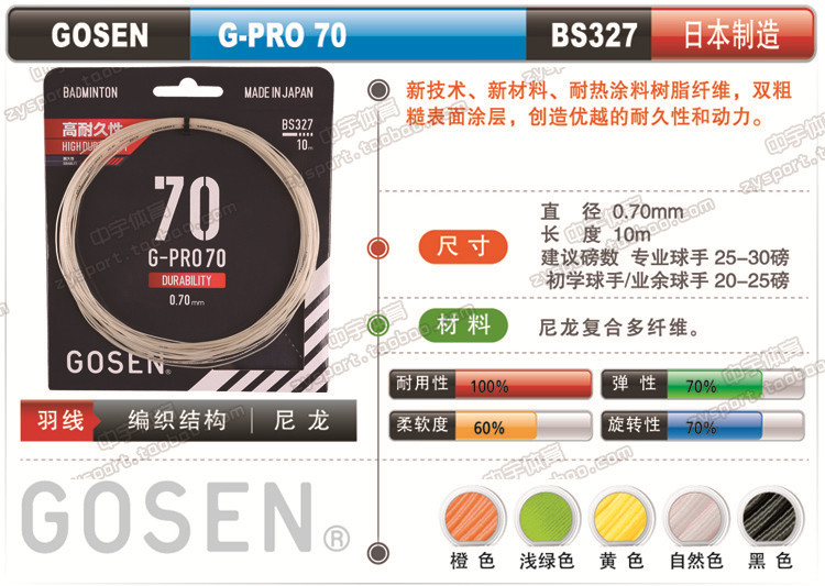 Gosen High God 70 Line 66 Line G-PRO66 70 Badminton Line High Bomb Resistant 5 Bar