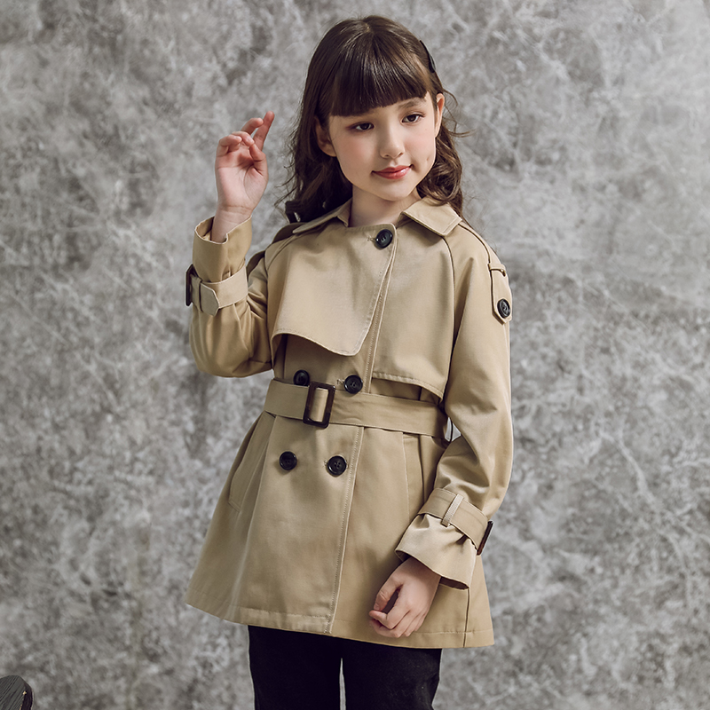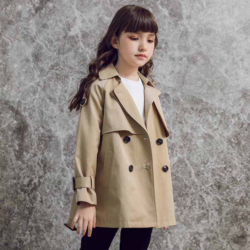 Girls trench coat children's coat 2021 new autumn dress foreign atmosphere in the big boy British style short spring and autumn children's clothing girl