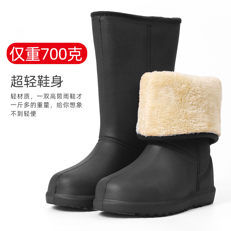 Winter rain shoes plus suede thickened Lady with high cylinder Water shoes Eva car wash Anti-slip waterproof and warm cotton rain boots