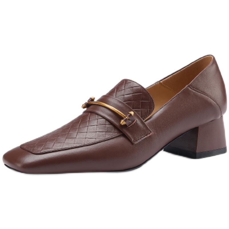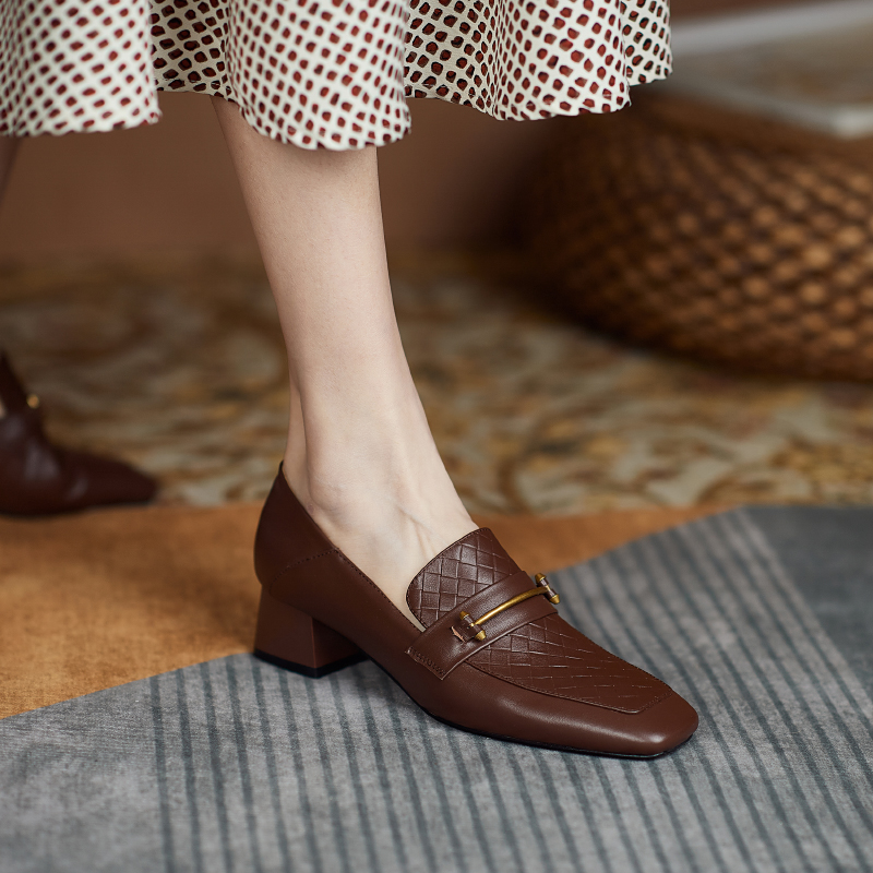 Lefoshoe Women Inn Wind Autumn Summer leather One foot pedal women's shoes brown coarse heel small leather shoes with deep stomp shoes
