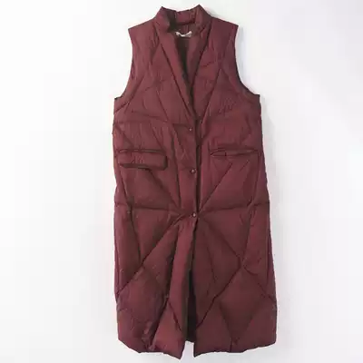 60437 autumn and winter New V collar single-breasted fashion warm long version 90 white duck down jacket vest women coat 1219