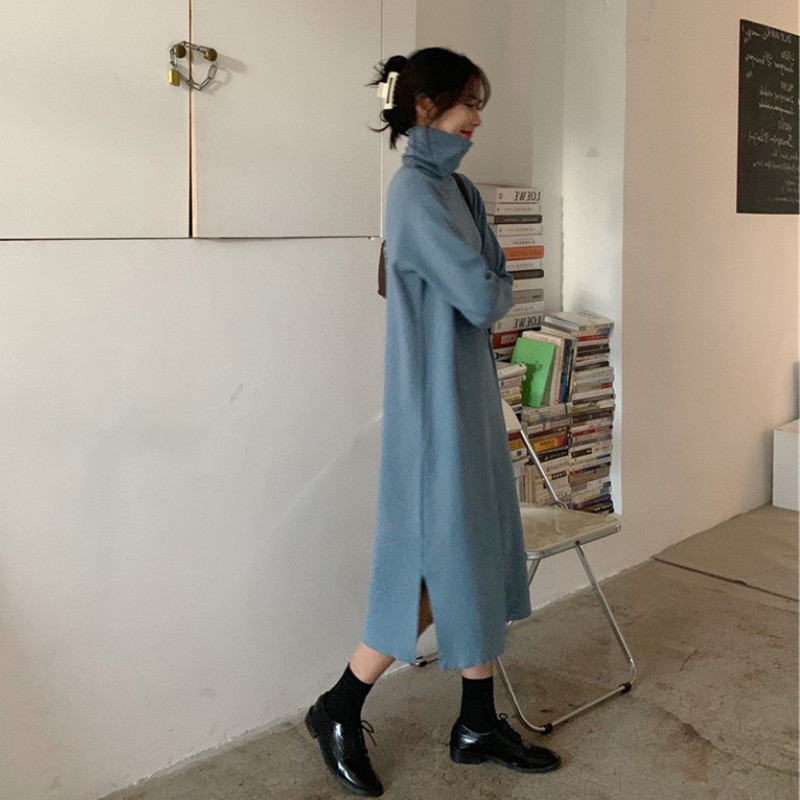 Gush thickened with high collar delsuede beating undershirt Women's autumn Winter 2021 New inner hitch Long version with a knee damp