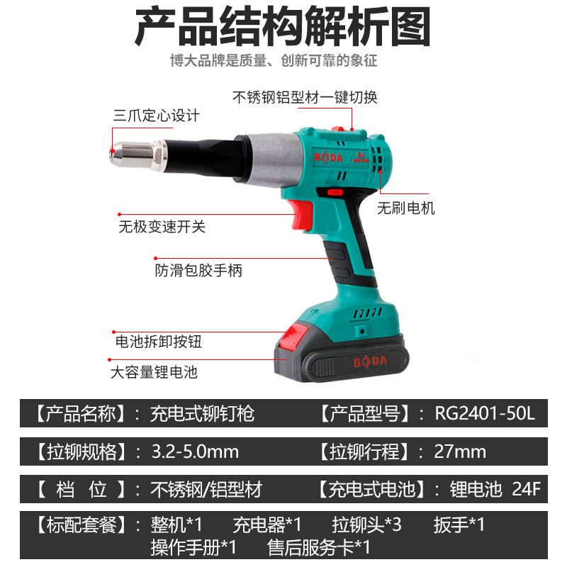 Boda lithium electric riveting gun rechargeable electric riveting gun automatic riveting gun stainless steel core pulling cap pulling machine - Taobao