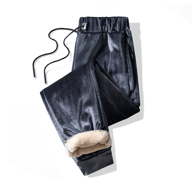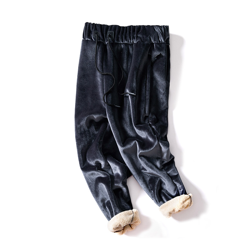 Tide lamb lamb trousers men and Korean edition of plus thick casual warmth northeast wind and cold and trend sports pants