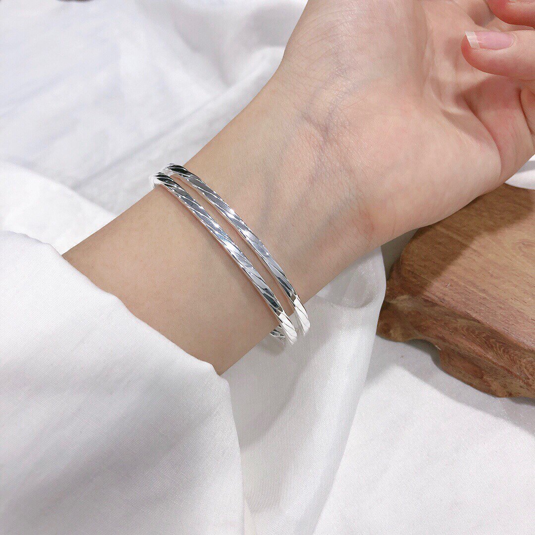 Hong Kong is born pure silver s999 Japan-South Korea net red fashion 100 hitch double line opening bracelet female minimalist student lukewarm