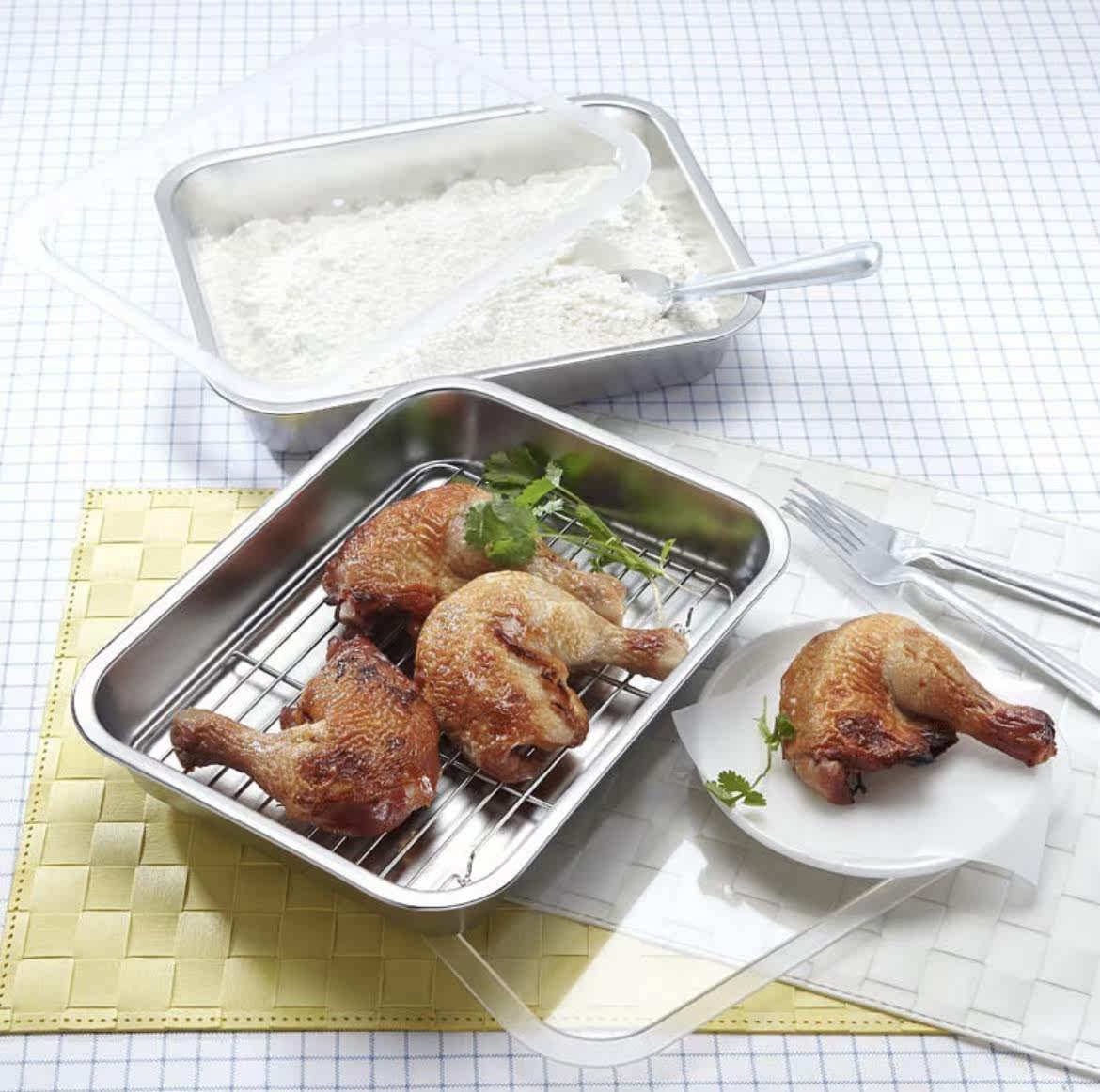 South Korea Imports Eat Podcast Hamzy with Fried Goat Meat String Chicken Pork Pork Stainless Steel Sub-Layer Oil Spill Pan 3 pieces