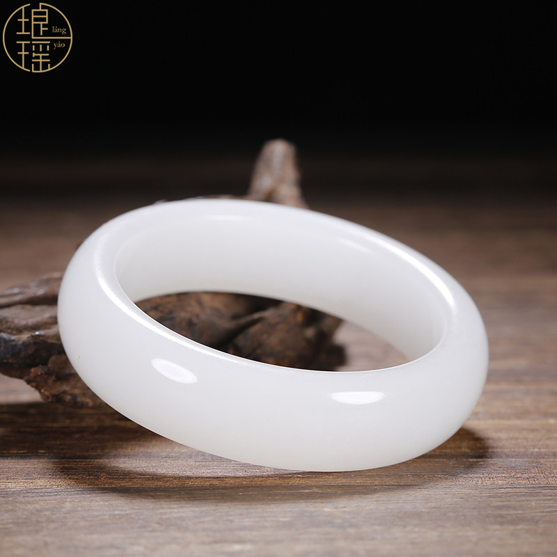 Luang Yao Xinjiang and Tian Yuhand bracelet natural goat fat jade white jade lady with a wide flat bar jade bracelet with certificate