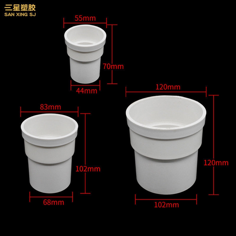 Internal and external inserts Direct size extended joint accessories 50 75 110pvc drain pipe beam rainwater bearing plug-in head
