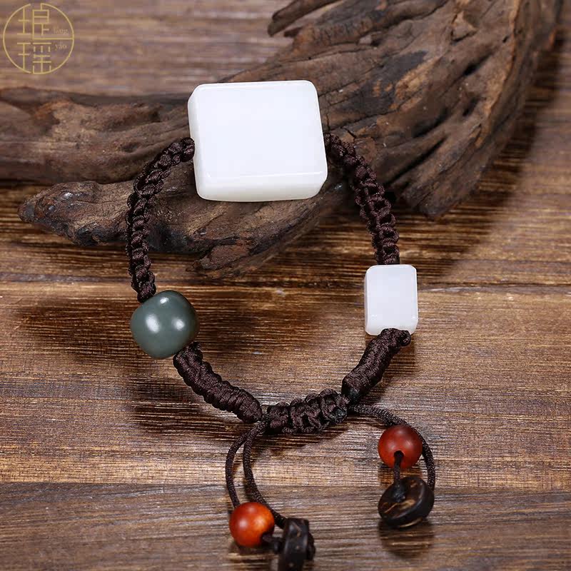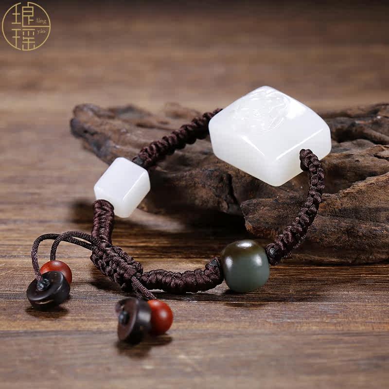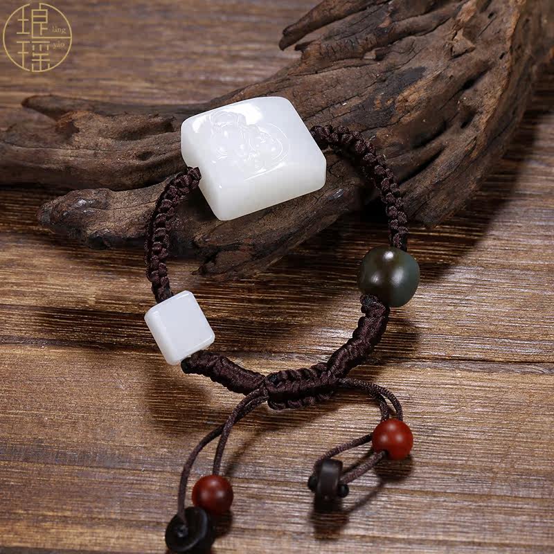Luang Yao Xinjiang and Tian jade Smiling Buddha Hand Card Natural Goat Fat White Jade Lady's Hand Strings of the Millver Jade Hand Decoration