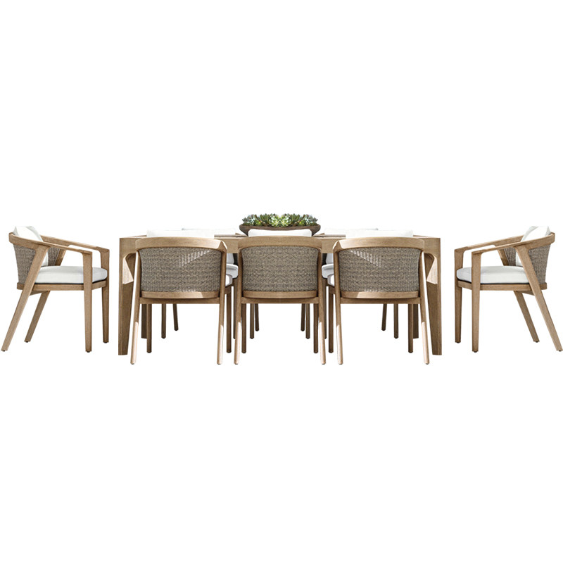 High-end Teak Wood Outdoor Leisure Table And Chairs Combo Outdoor Villa Courtyard Terrace Open-air Rattan chair waterproof sunscreen furniture-Taobao