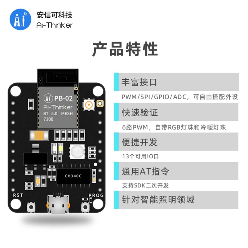 Anxin can Bluetooth development board mesh networking directly connected to Tmall Elf APP applet can control PB-02-Kit