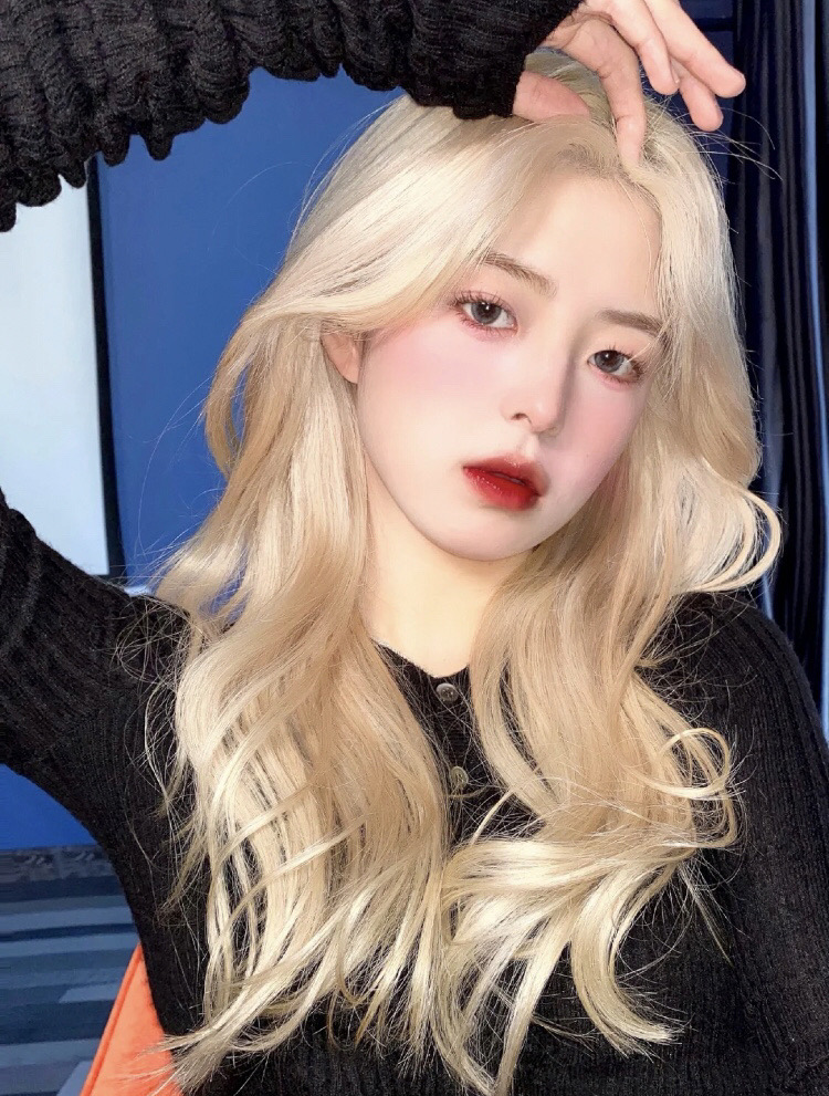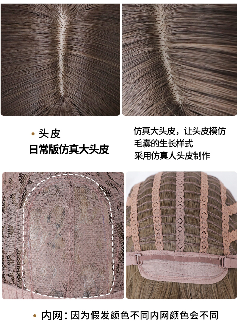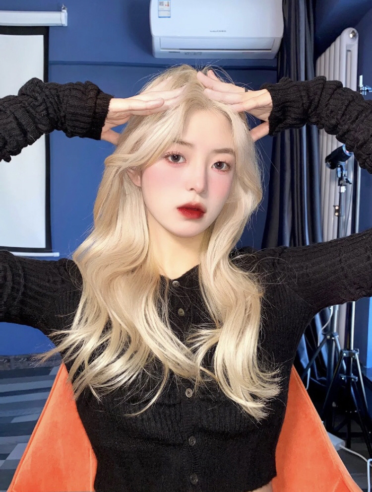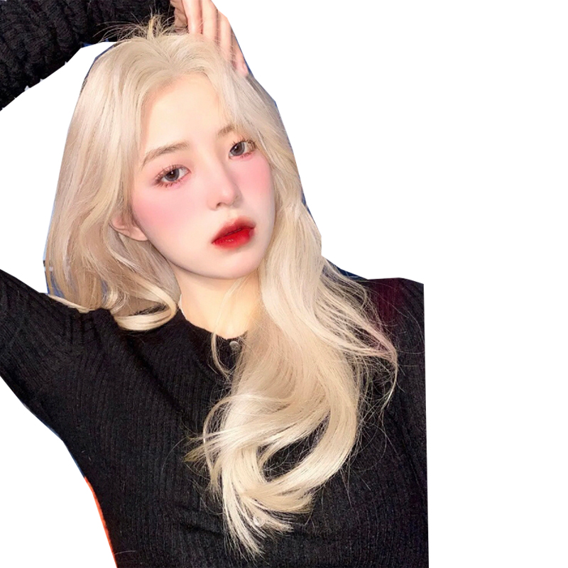Mid-point rose platinum wig women's medium-length curly hair Internet celebrity without bangs temperament natural full-head wig