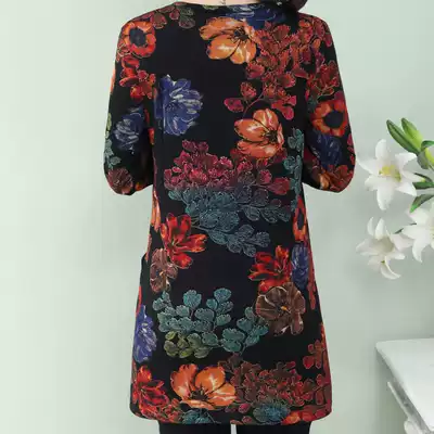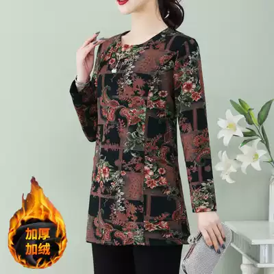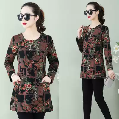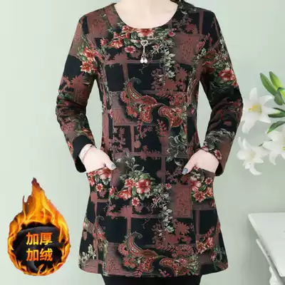 Female top long sleeve mother dress long fashion print warm base shirt autumn and winter New plus velvet thickened