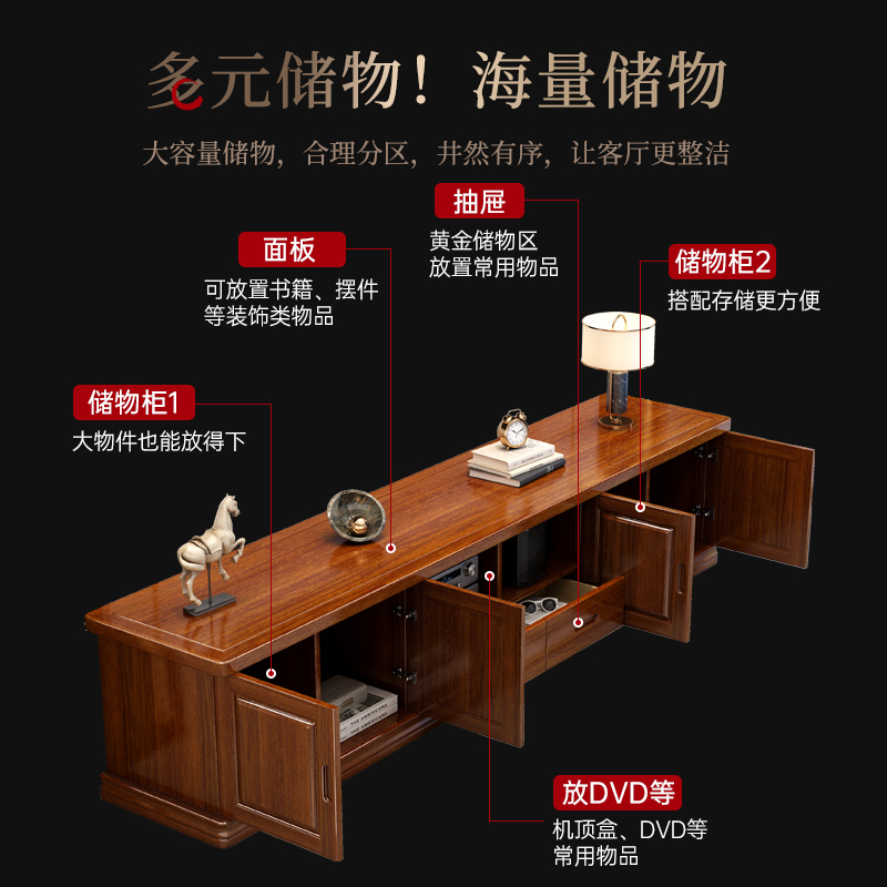 Walnut Wood TV Cabinet Nordic Small Household Type Brief Living Room Bedroom Storage Ground Cabinet TV Cabinet Tea Cabinet full solid wood