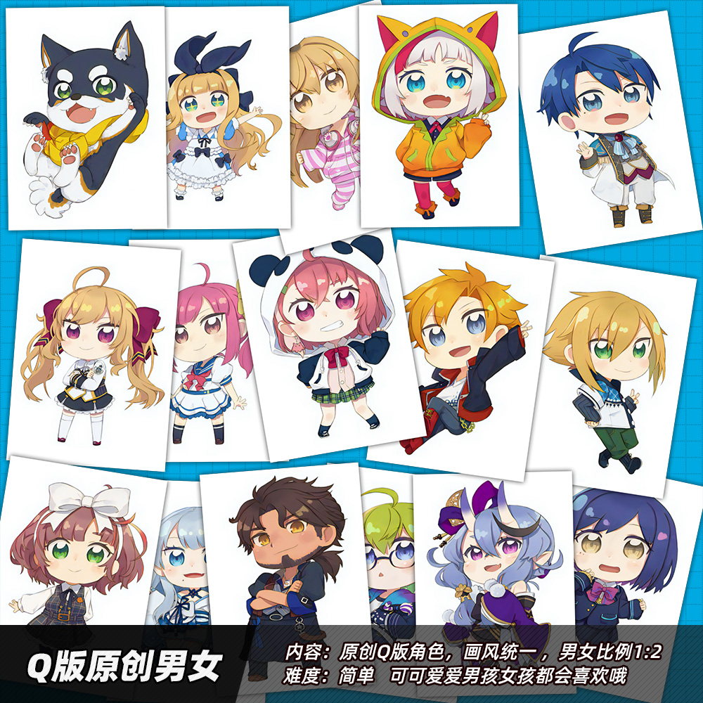Junior Cartoon Men and Men Q Edition Liner's Creative Fine Arts Painting Painting Room Mark Pen Water Painting Fan Painting-Taobao