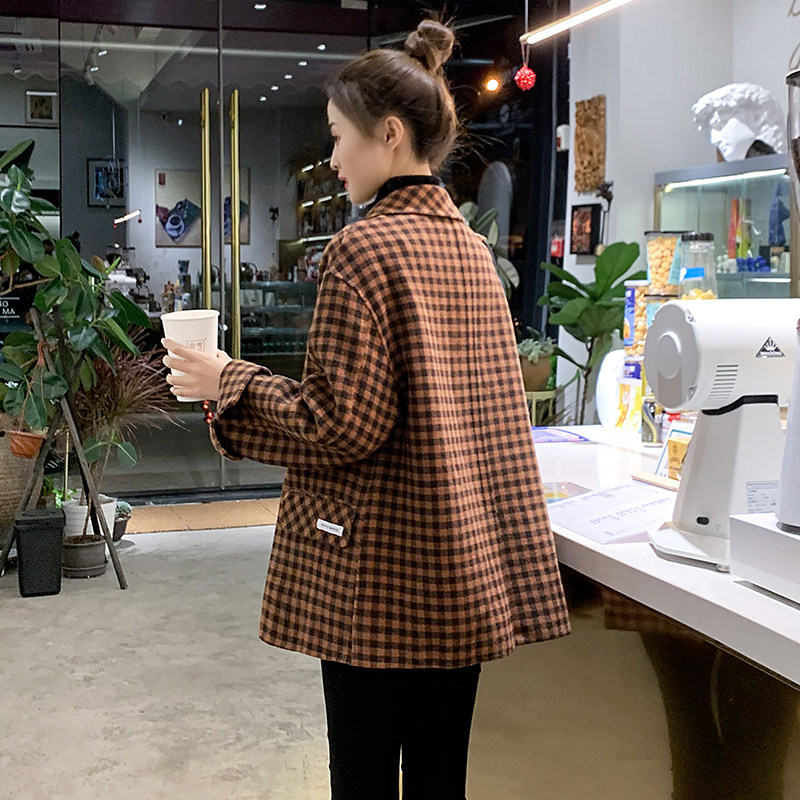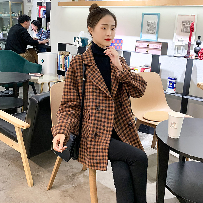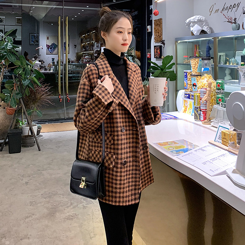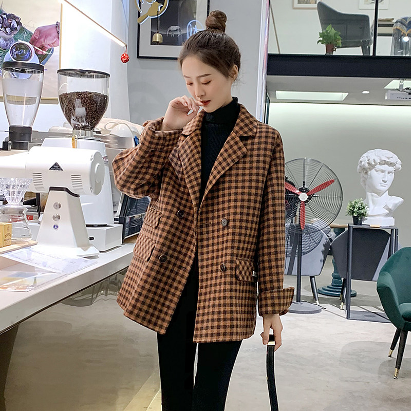 Suit double face cashmere Son Coat Girl Short small sub loose Plaid Fur Coats 2021 Winter New
