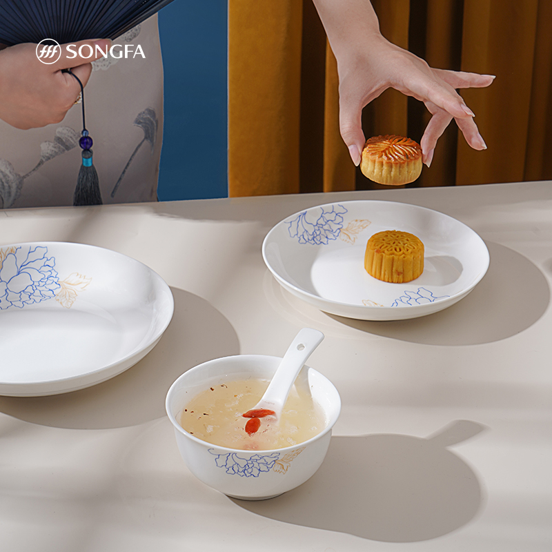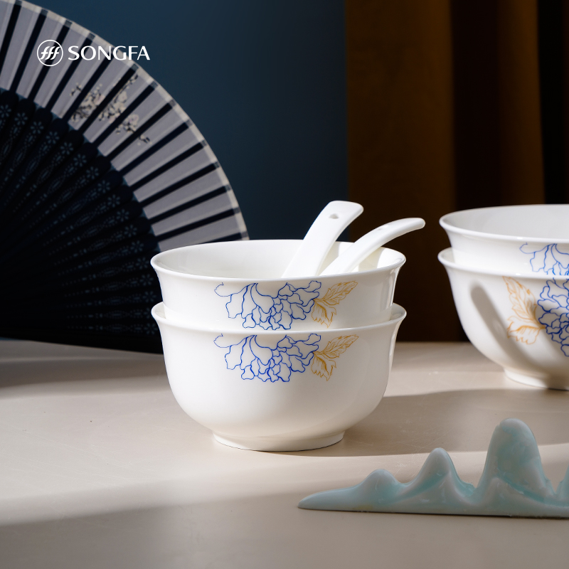 Songfa 20 blue treasure peony Chinese moonlight porcelain bowls and plates household tableware set Chinese style gift box tableware set