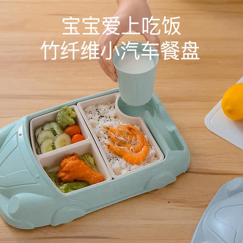 Baby plate Children's household partition Bamboo fiber food bowl partition Cartoon drop tableware School kindergarten