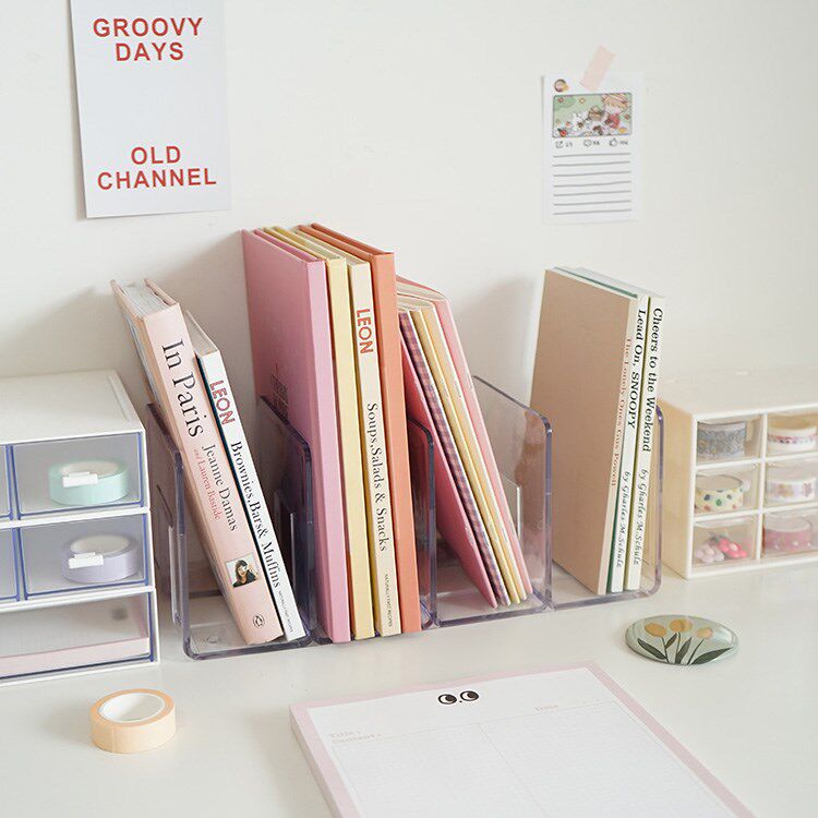 Transparent Acrylic Book Stand Brief Joins Books Show Shelf Students desktop containing separation books rely on book blocking customisation