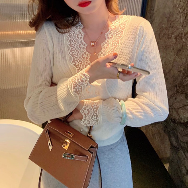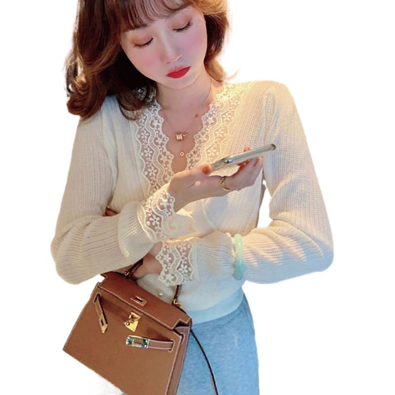 Sanskrit on 2022 new white lace jersey undershirt female inner lap spring foreign long sleeves 100 hitch cardiovert blouse