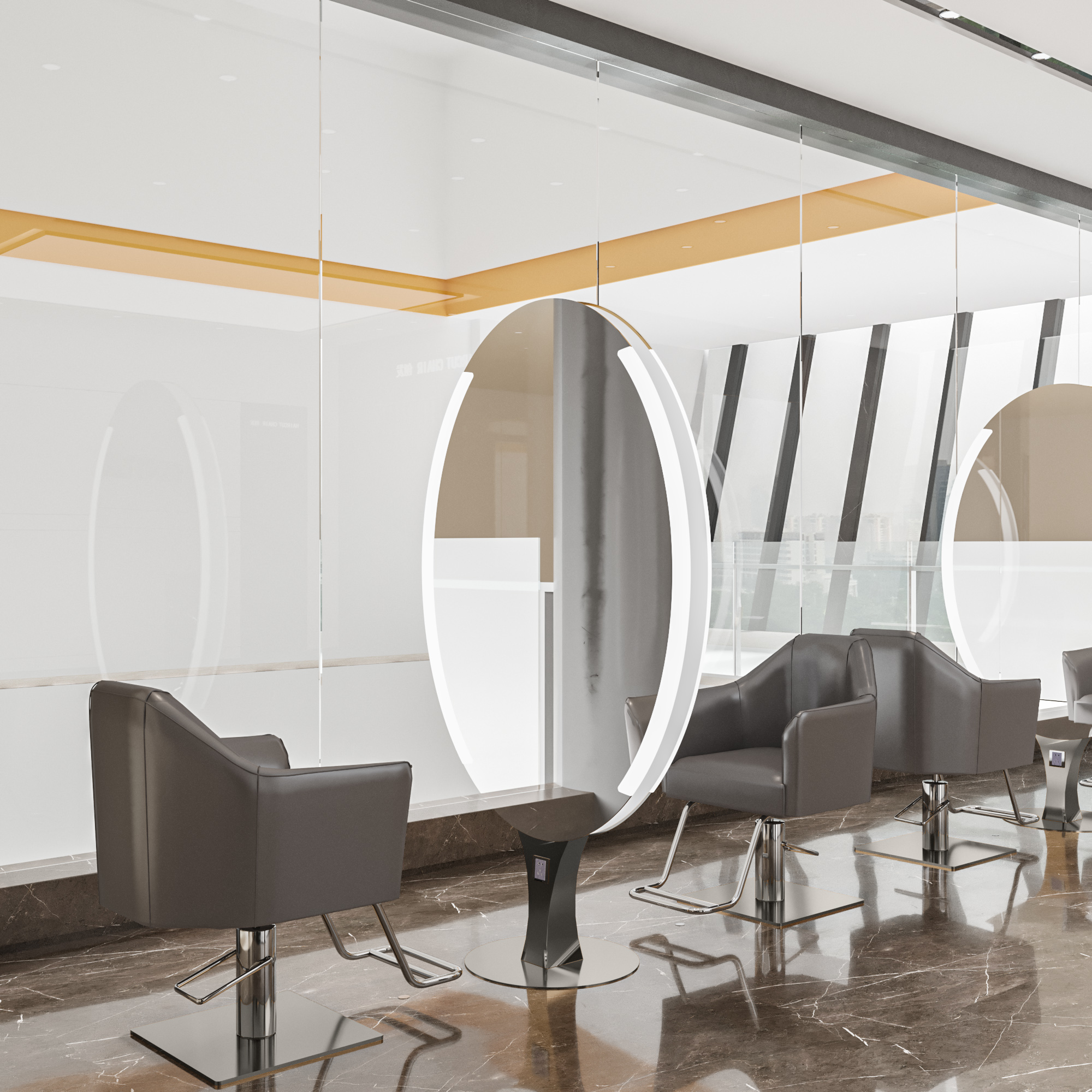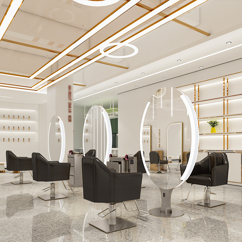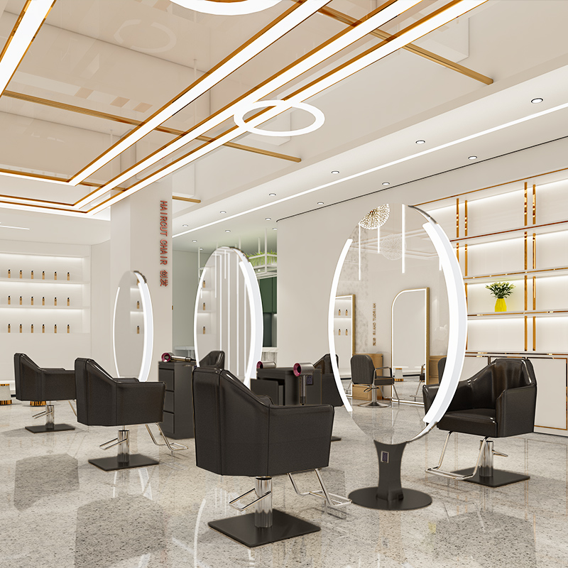 The new net red light luxury barber shop double-sided floor mirror stainless steel hair mirror table hair salon hair salon exclusive