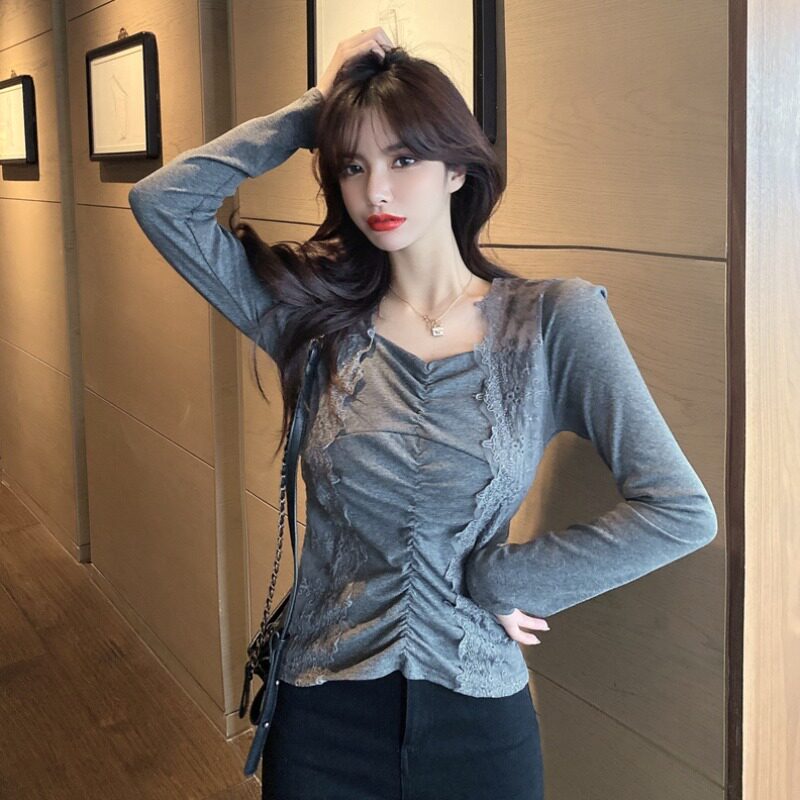 Vanyalace played a new Han-style long-sleeve T-shirt by the winter and wearing gold velvet pink coat