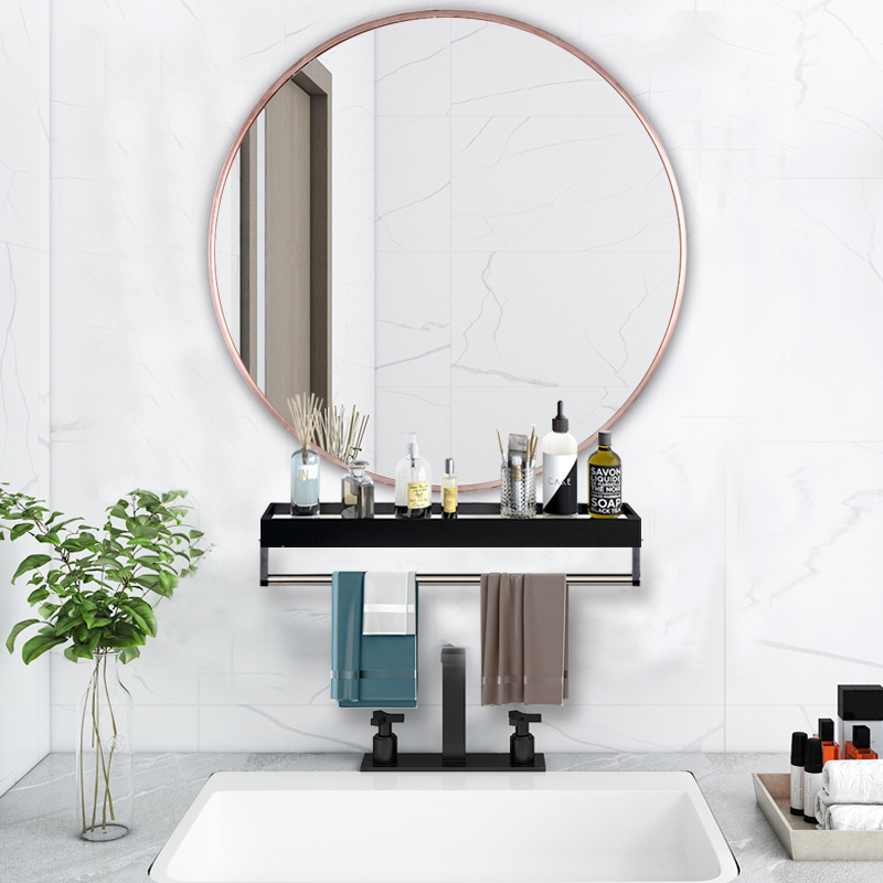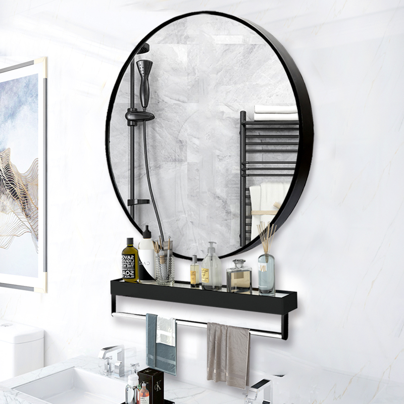 Punch-free round bathroom mirror with shelf makeup room toilet washstand wall-mounted makeup wall-mounted bathroom
