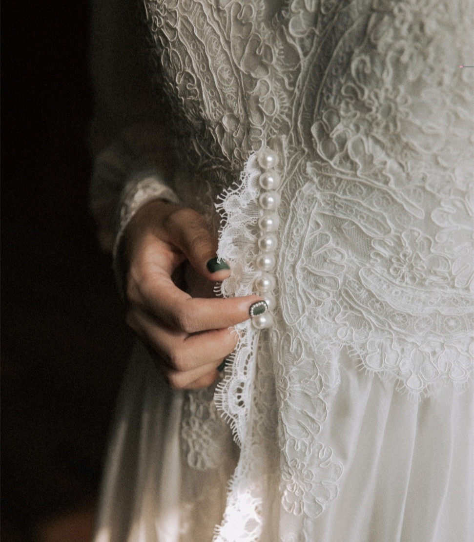 White car bone lace robe suspenders