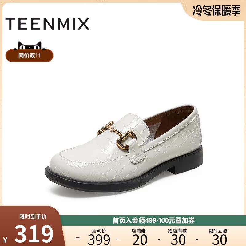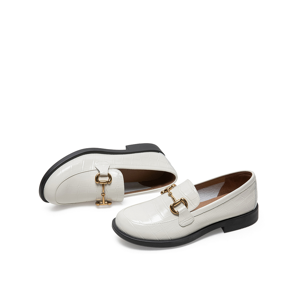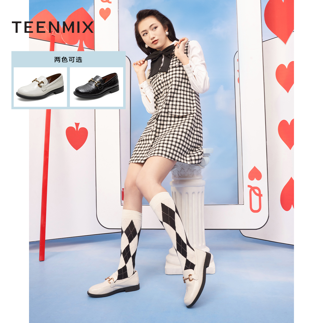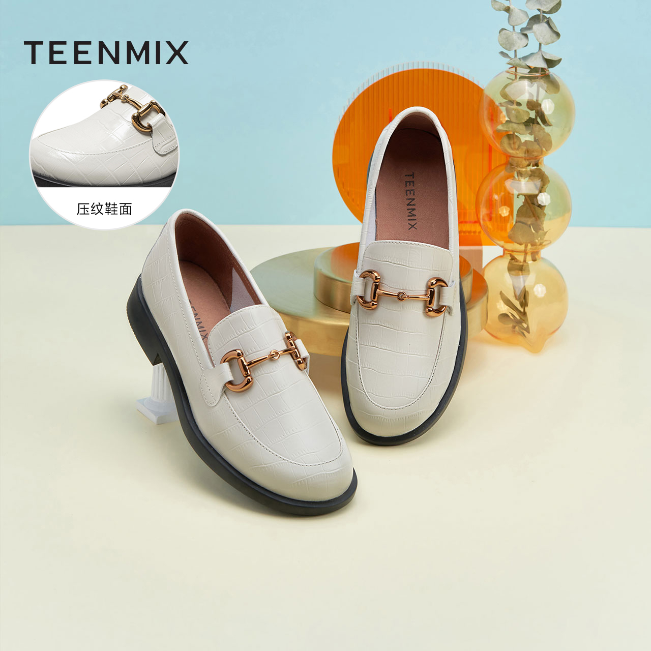Tianmeiyi spring and summer new shopping malls with the same retro metal embossed loafers women's low-heeled leather shoes college style single shoes - Taobao