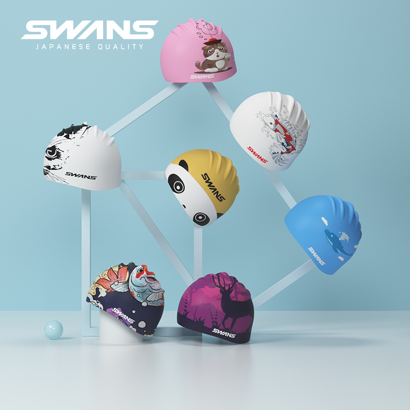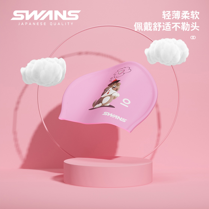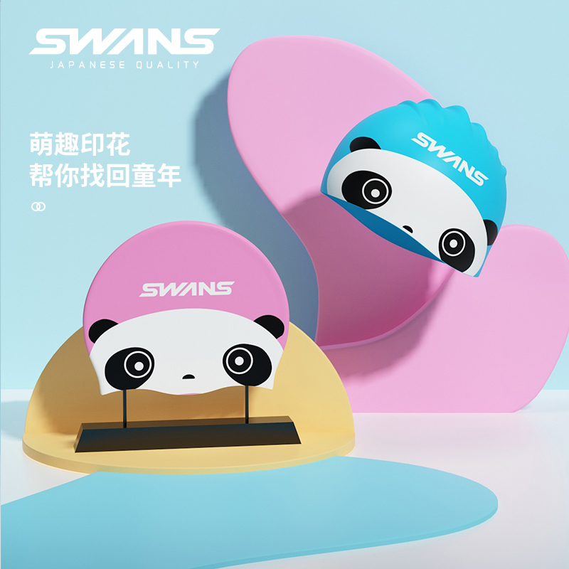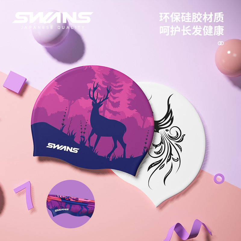 Swans swimming cap women's waterproof long hair does not strangle children's printed silicone swimming cap swimming goggles set fashion hot spring