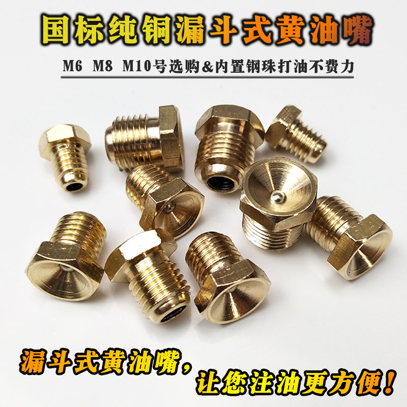 The national standard pure copper funnel type M6M8M10 butter mouth harvester is ultra - long tip flat head injection mouth