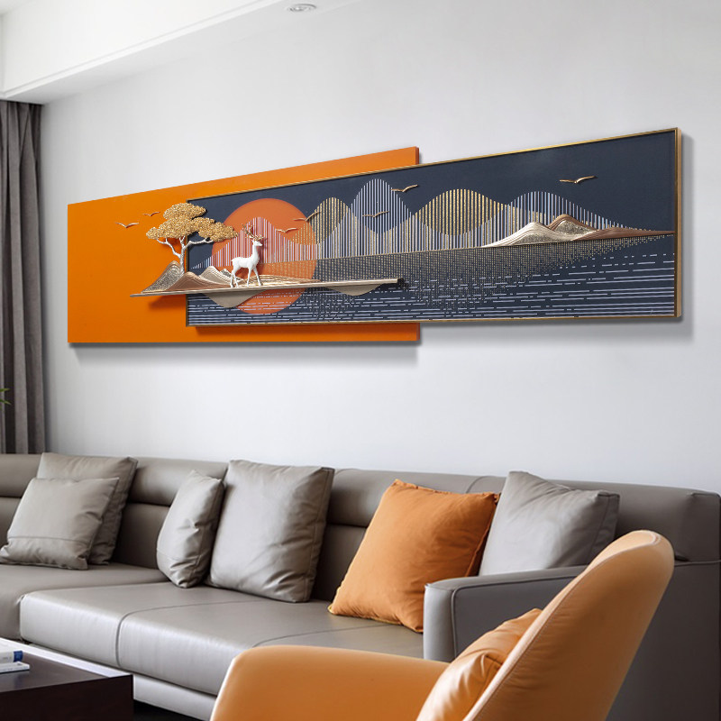Modern minimalist light luxury living room decoration painting sofa background wall painting abstract wall mural Nordic high-grade orange