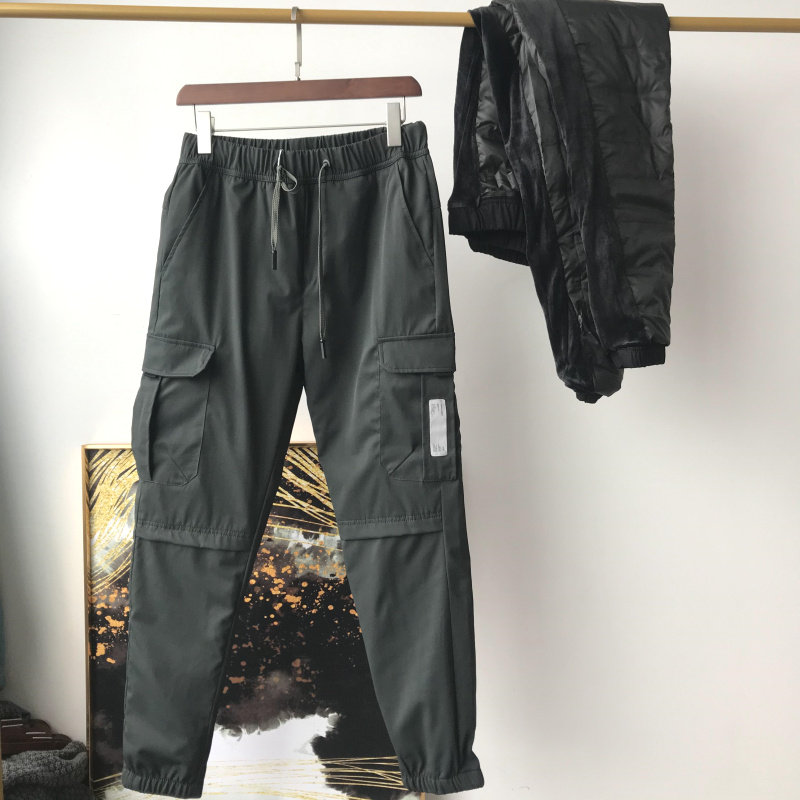ODM Company Goods ~ 90 White Duck Suede Tightness Waist Tooling Casual Pants Men Winter Close-up Plus Suede Thickened Down Pants Tide