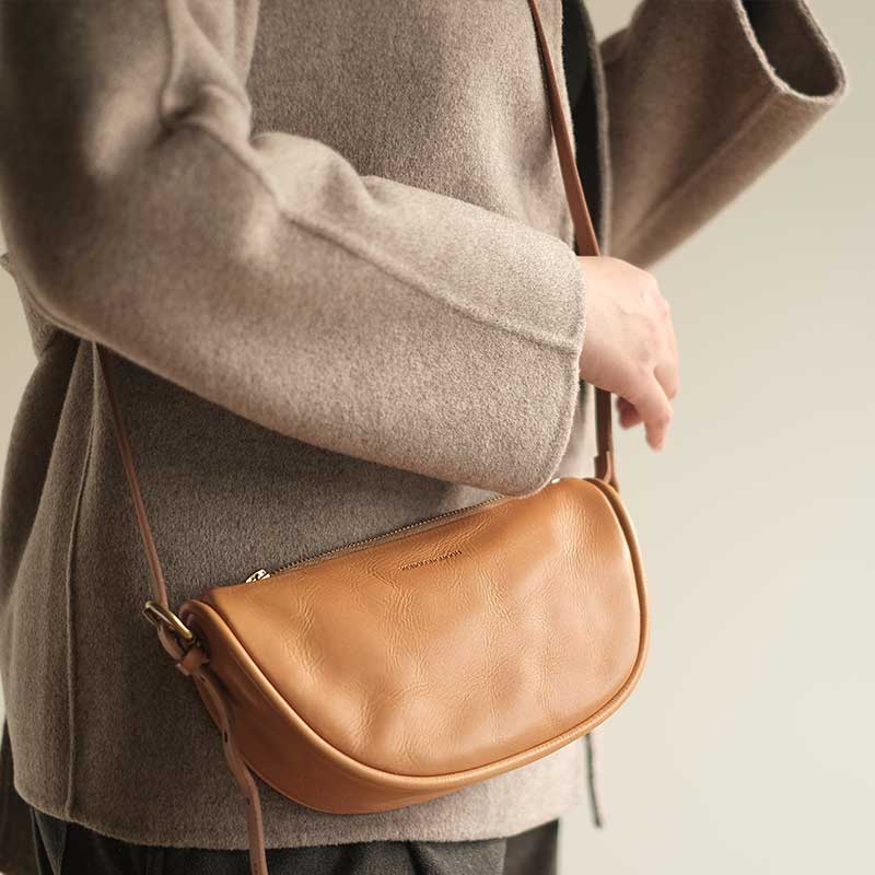 KONGLONGMOGU full leather handmade vegetable tanned cowhide trendy brand crossbody all-match mini bag ladies saddle bag