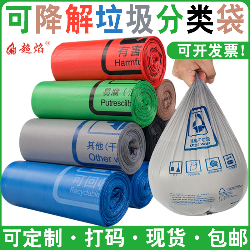 Degradable garbage sorting garbage bags household thickened kitchen waste garbage bags can be customized can print logo two-dimensional code custom