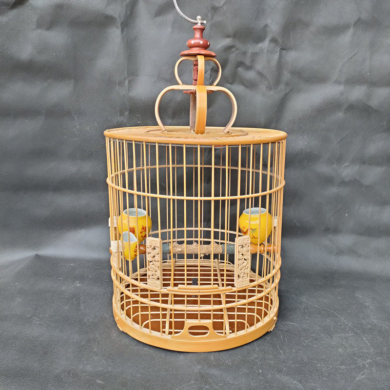 Boutique Eyebrow Bird Cage Tianjin Caged with green leather Polished Bird Cage Bamboo Round Cage Wax Mouth Octao Bird Cage Drum Bottom