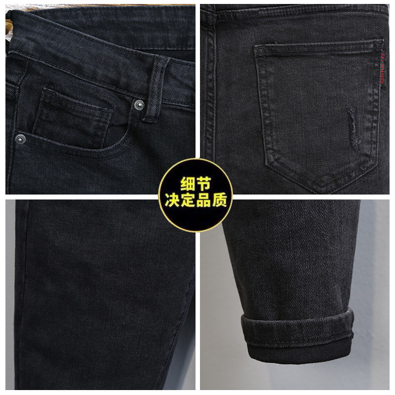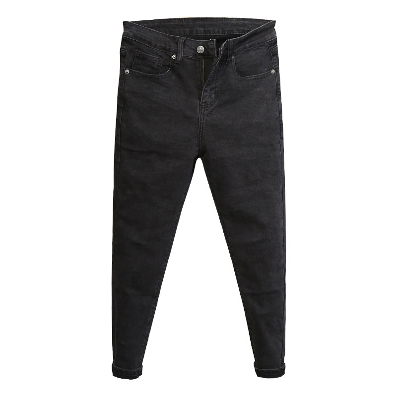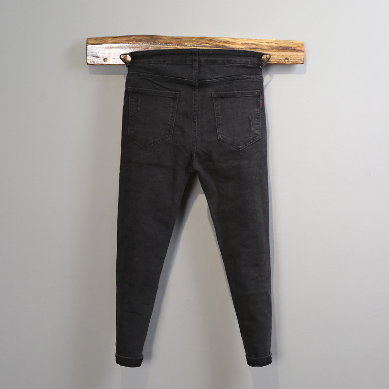 Tide brand European goods spring new style old black jeans men's Korean version trendy micro-span slim feet elastic trousers