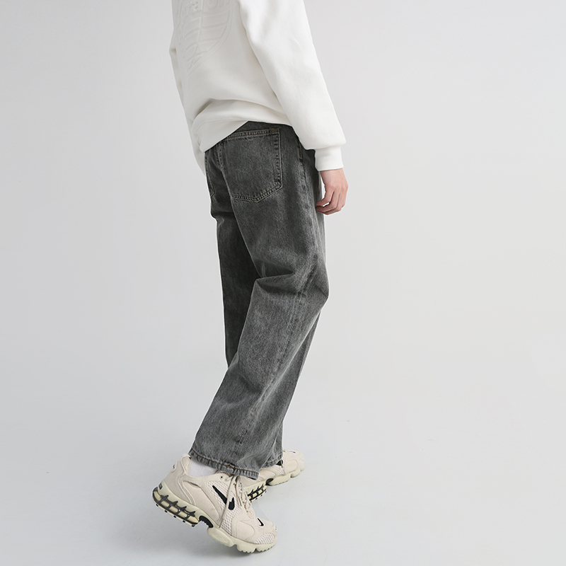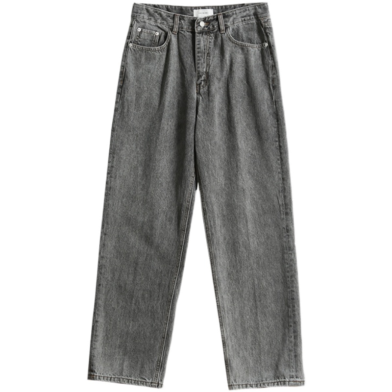 Grey Washed Straight Loose Wide Leg Jeans Trousers Popular Men's Pants Exquisite Korean Style