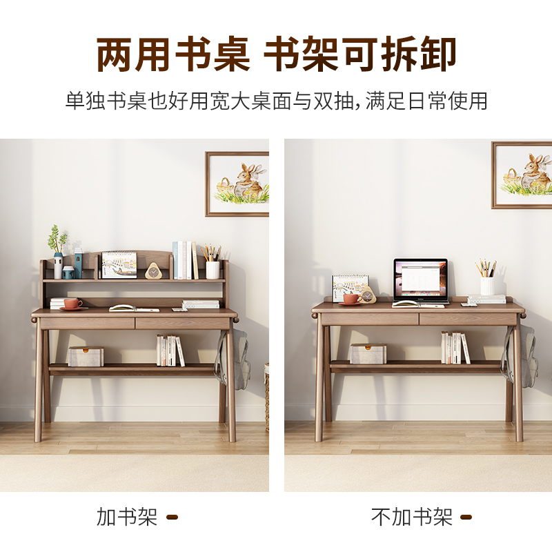 Desk with shelf 120CM long-original wood color-desk with shelf 100CM long chair-original wood color-desk 80CM long chair-original wood color-desk with set