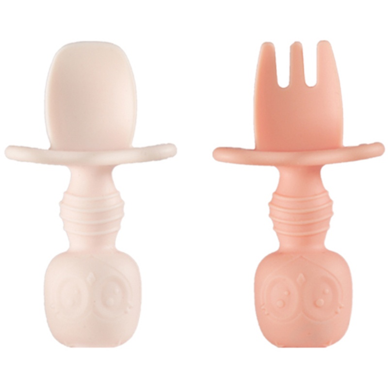 Love Clicks IKV Silicone Newborn Spoon Baby Learn Yellow Chopsticks Baby Boy Eat Soft Pink Fork Spoon