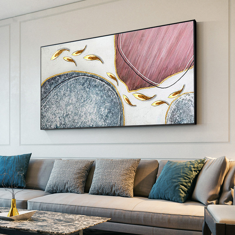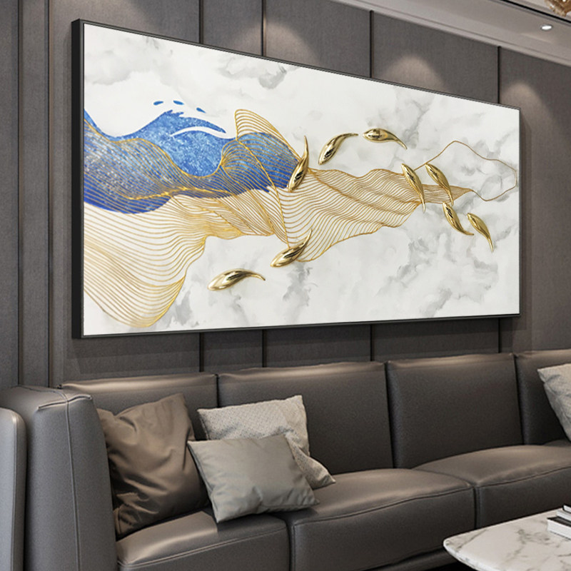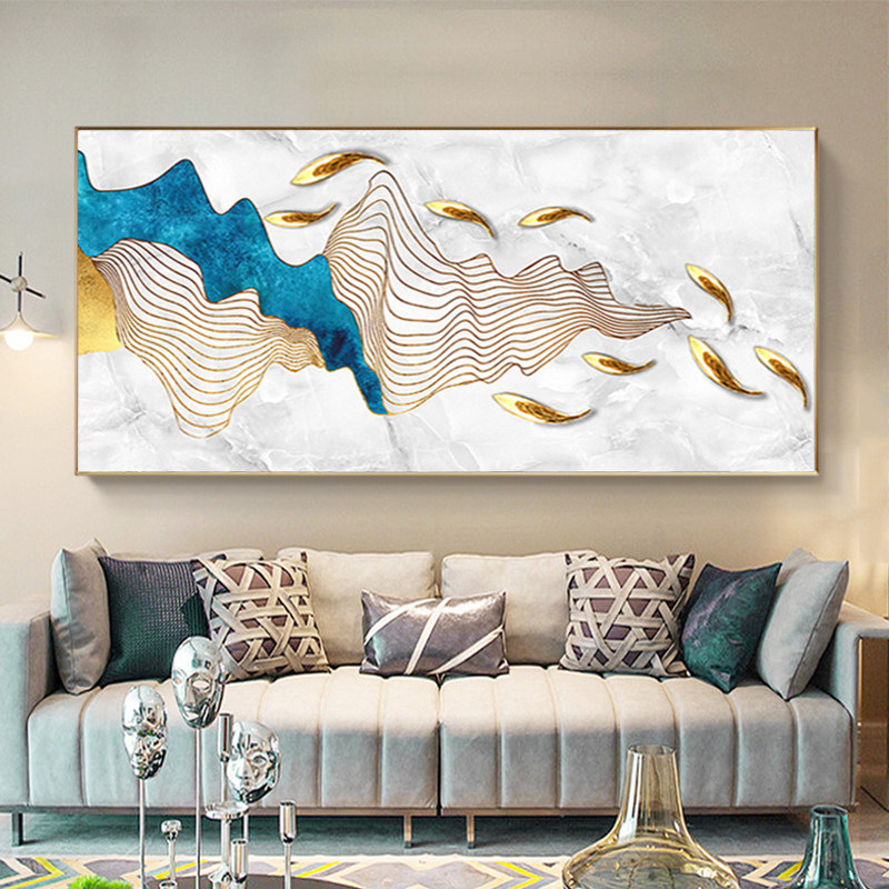 Pure hand-painted oil painting light luxury living room decorative painting horizontal version of the atmospheric high-end hanging painting sofa background wall nine fish picture mural
