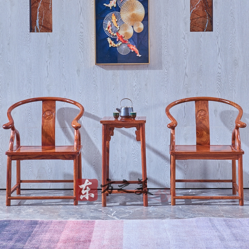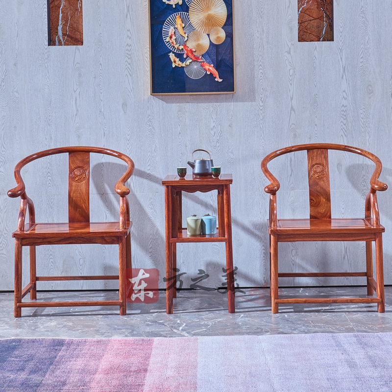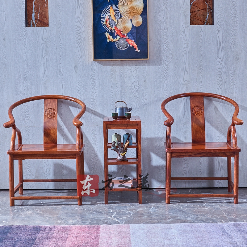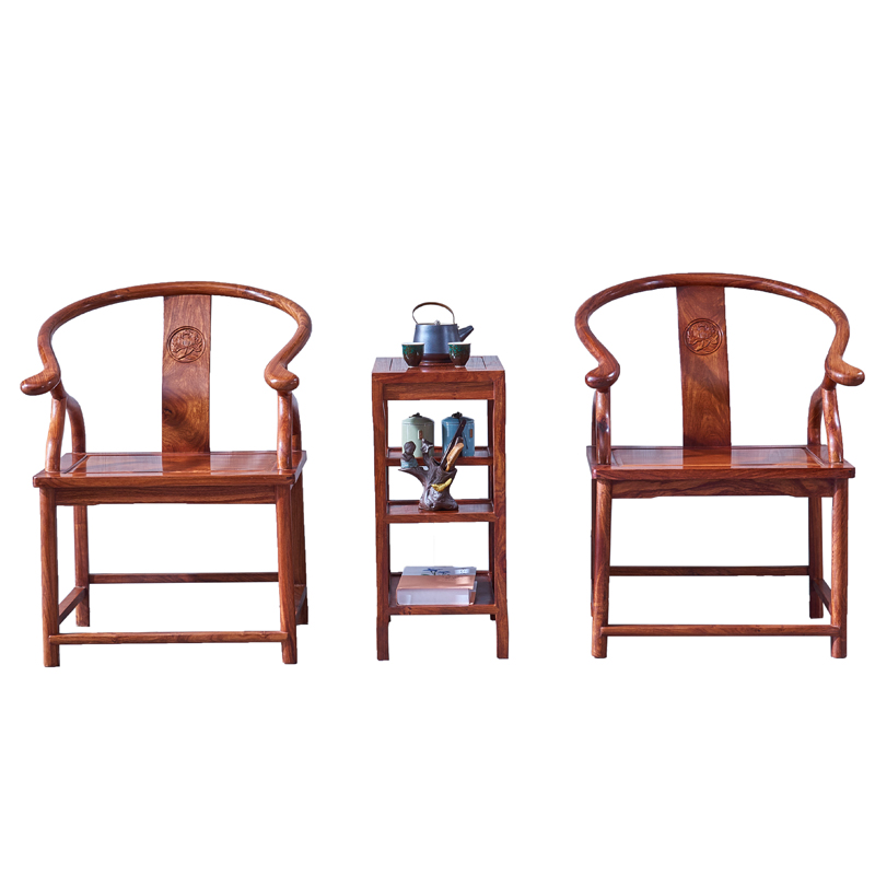 Mahogany Chair Rosewood Living Room Leisure Taishi Chair Solid Wood Carved Antique Backrest Chair Three-piece Set