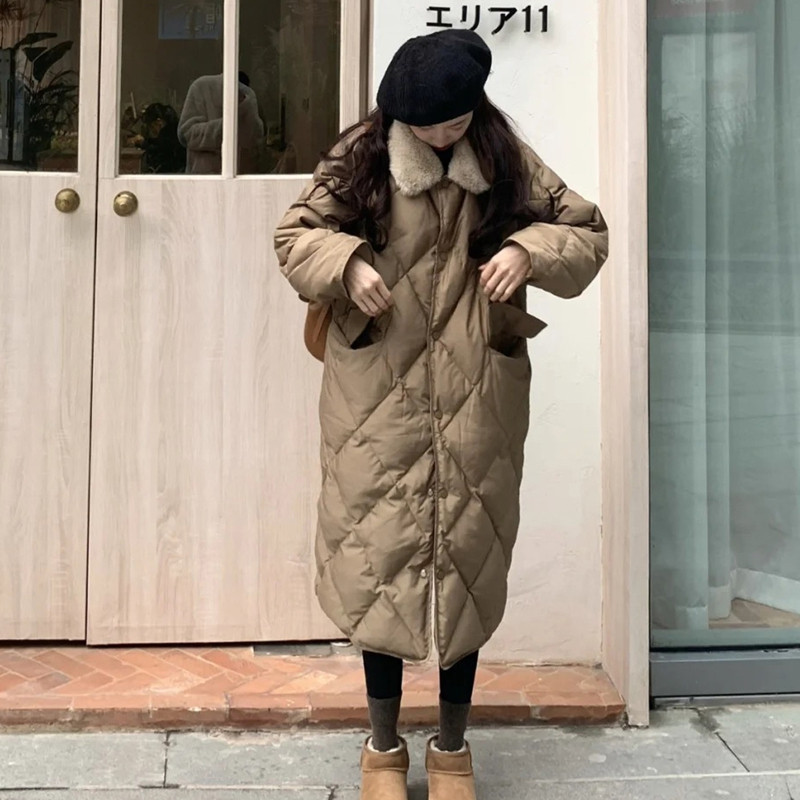 Lingge cotton-padded clothes women's 2022 winter new cotton-padded jacket design sense niche hot style ins Hong Kong style mid-length
