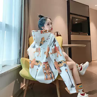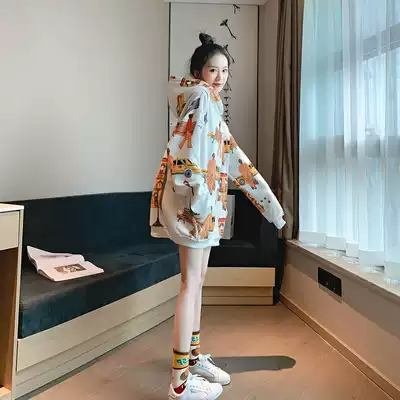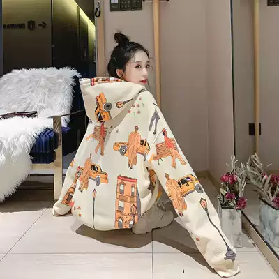SADO YINER sweater women autumn and winter 2021 New lazy style fashion medium and long version plus velvet print coat tide