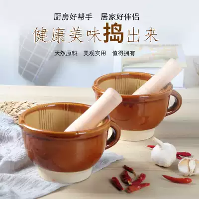 Ceramic bowl, pepper preserved egg, household garlic press, garlic mortar, rice paste, garlic bowl, eggplant, old-fashioned pounding and grinding