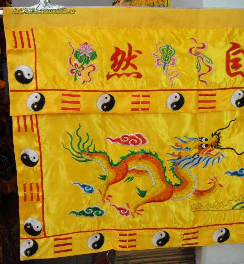 Yellow silk embroidery 2 5m double dragon fabric natural tableapron 8 feet have a medium tablecloth for the bench curtain