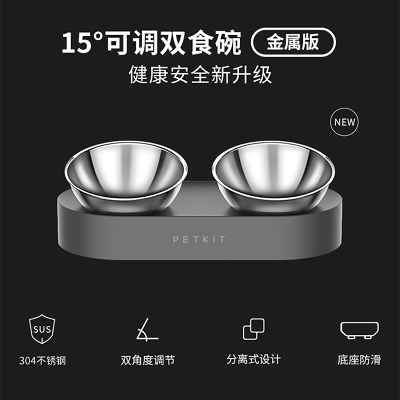 Xiaopei stainless steel cat bowl cat double bowl adjustable dog feeding bowl dog cat food basin cat water basin protection vertebra