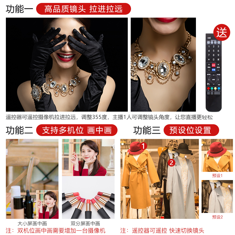 10x zoom lens + floor bracket + live green cloth + keypad 10x zoom lens + floor bracket + live green cloth + green link live sound card + Boya 3031 microphone 10x zoom lens + floor bracket + live green cloth + p1 sound card + 1 drag 2 wireless microphone 10x zoom lens + floor bracket + live green cloth + sound card set + 200w scene light 10x zoom lens + floor bracket + live green cloth + sound card set + two 200w scene lights Two 10x zoom lenses + two floorstands + Live green cloth + sound card set + two 200w scene lights (for conference online courses) 10x zoom lens + floor stand + professional services Personalized customized live broadcast package