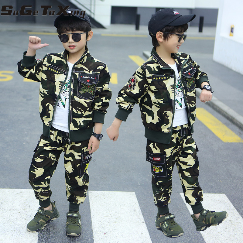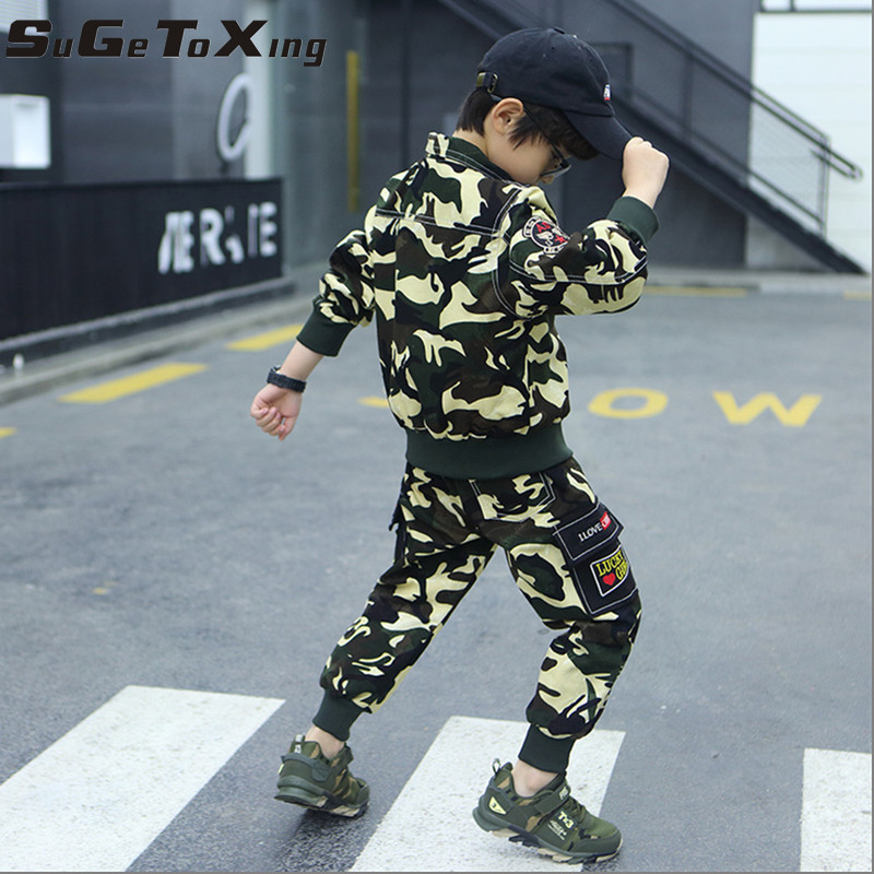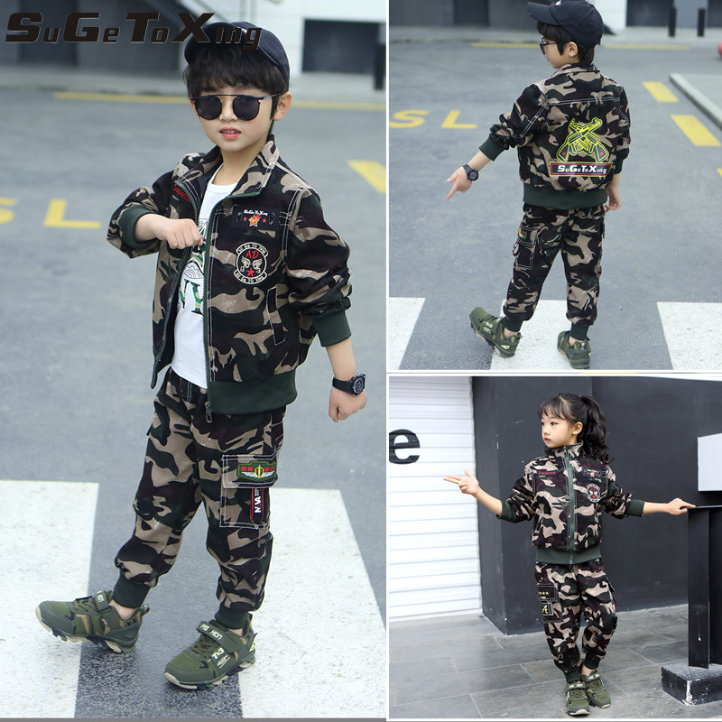 Boys camouflage dress handsome girl suit children camouflage boys clothing in childhood spring and autumn new trend