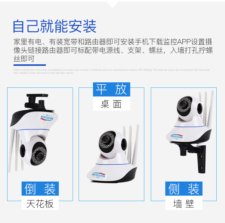 Bao 360 degree panoramic camera connects mobile phone remote HD night vision wireless home monitor without dead angle